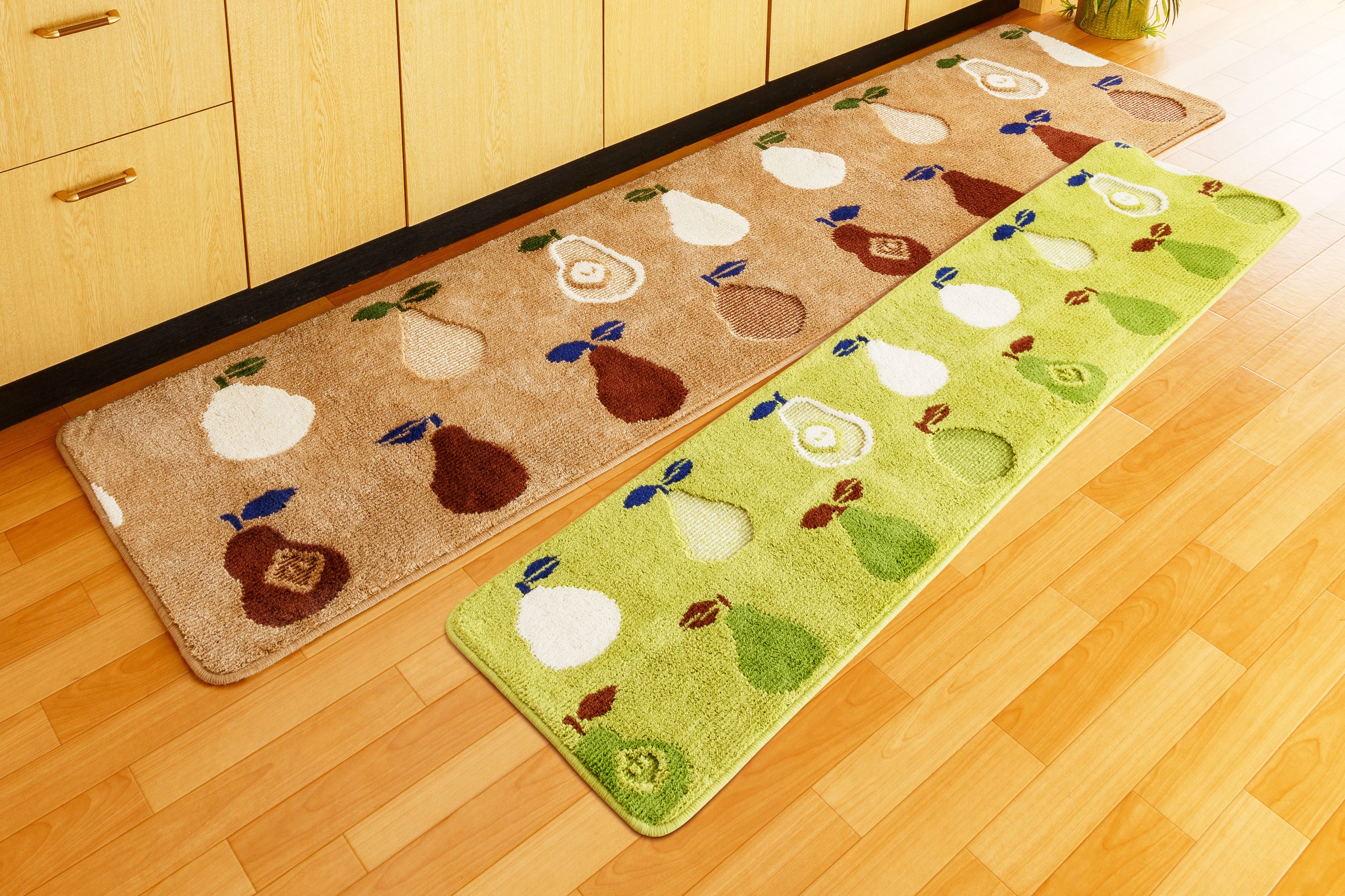 キッチンマット 拭ける ラ・フランス(縦60cmx横180cm)撥水加工 抗菌 防臭 洗える 滑り止め