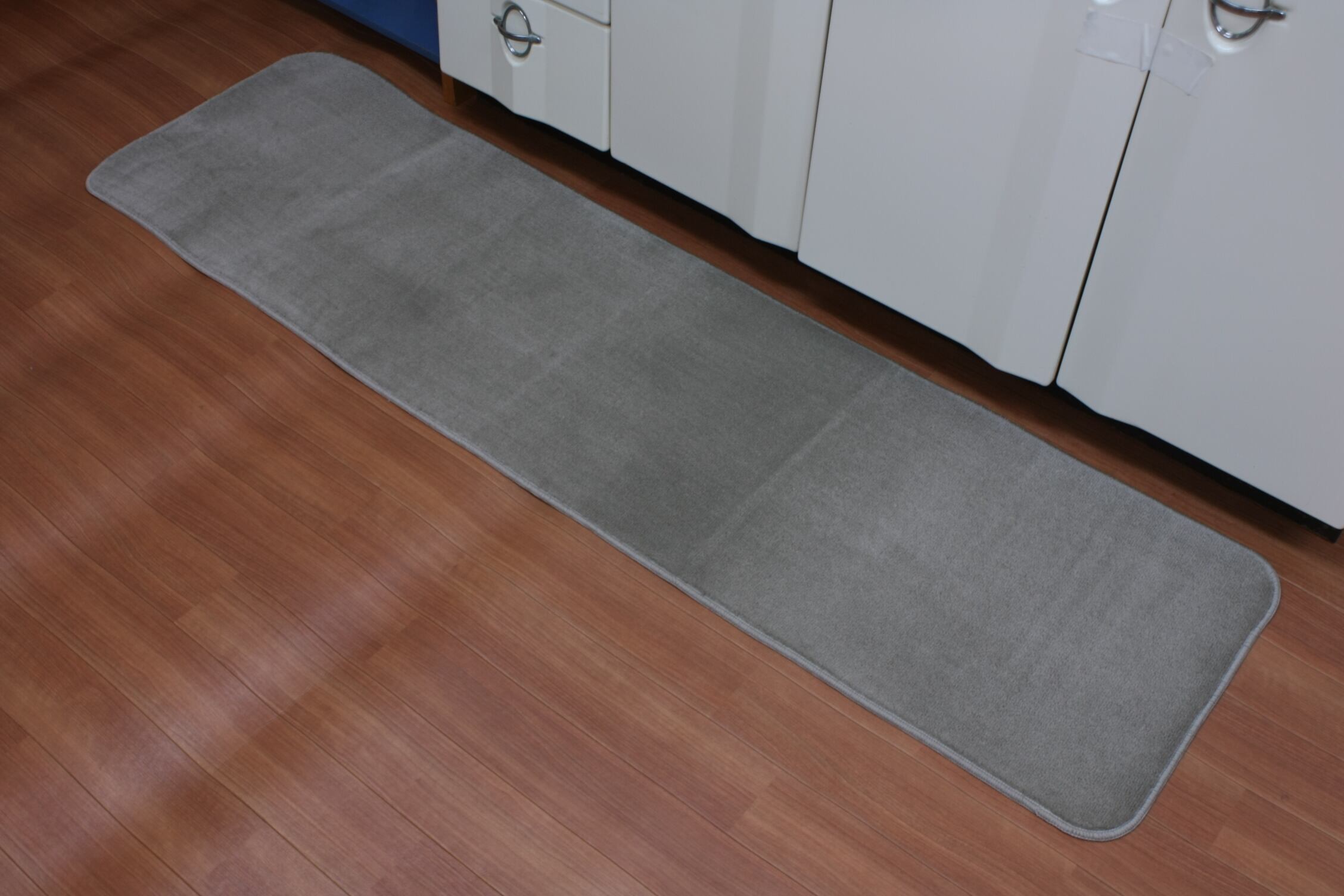 ※ワックスがかかった状態のまま使用されますとマットの裏面のすべりどめ樹脂が軟化する場合があります。「裏面すべりどめ加工付マットの場合」は、長時間同じ場所で敷きぱなしで使用されますとまれに床材が変色する場合がありますので、一週間に一度程度床面を拭いて下さい。