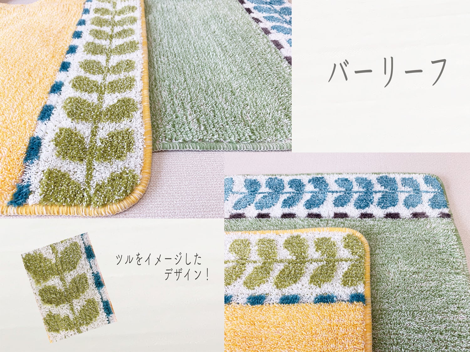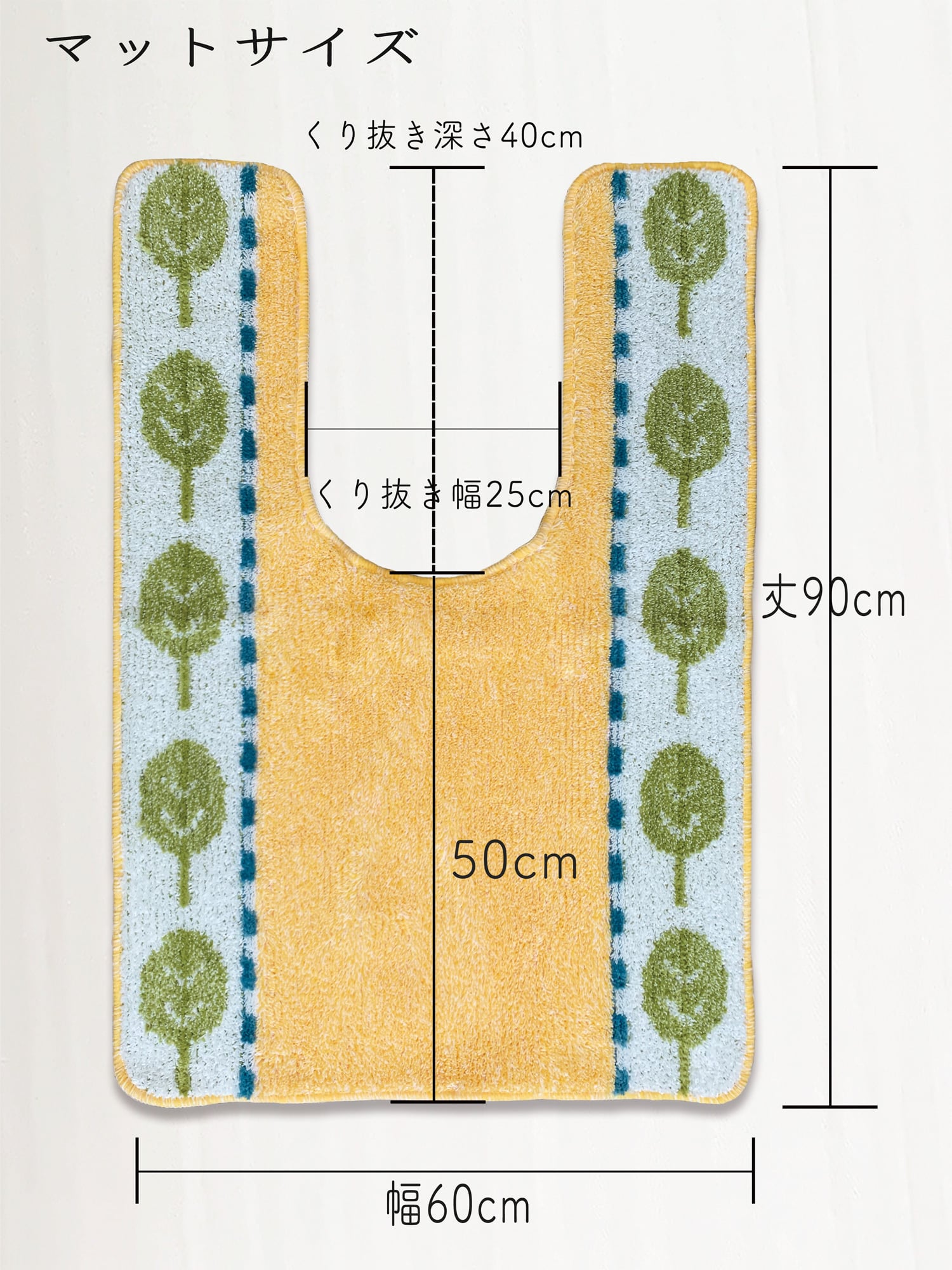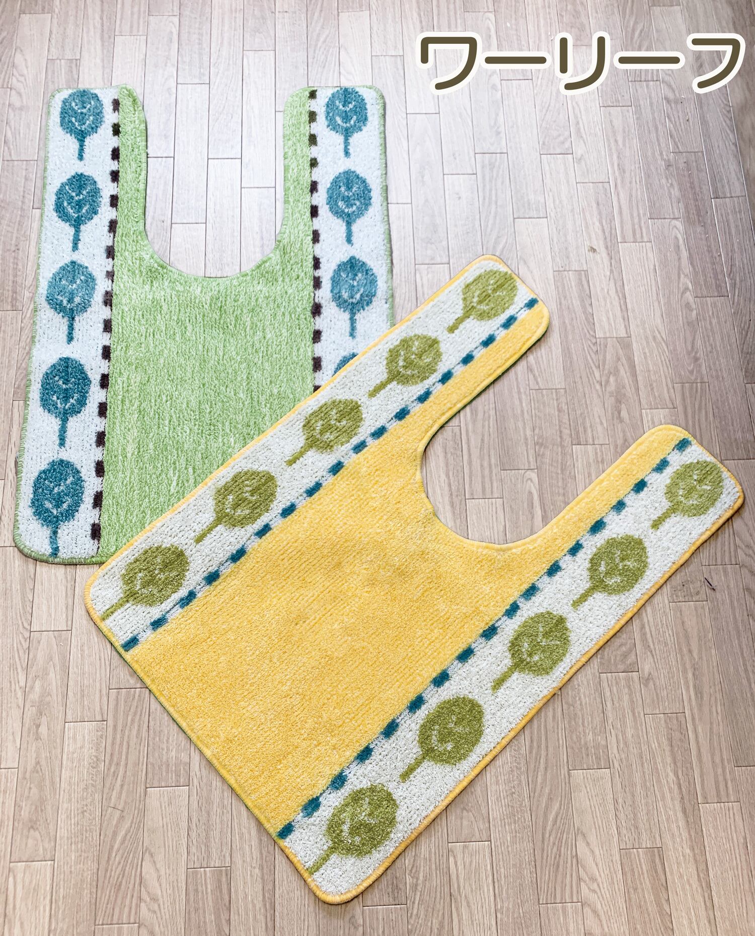 トイレマット ロング 耳長 ワーリーフバーリーフ(幅60cmx全丈90cm)北欧 洗える 抗菌 防臭 滑り止め