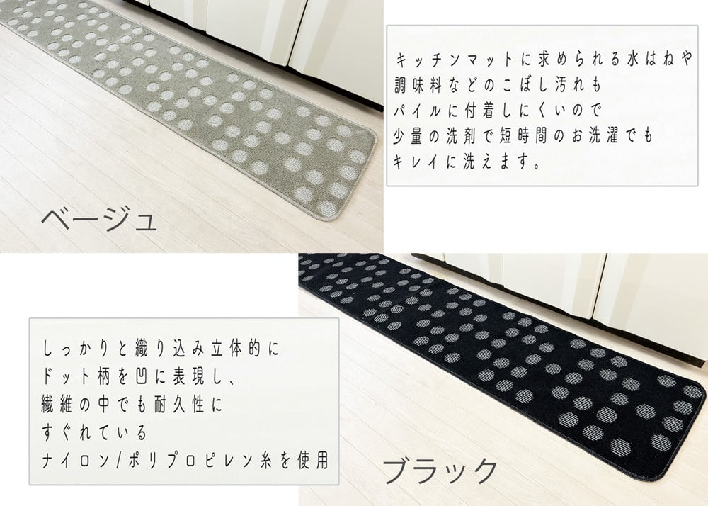 キッチンマット ロング ドットル5 (縦45cmx横240cm) 抗菌 防臭 洗える 滑り止め