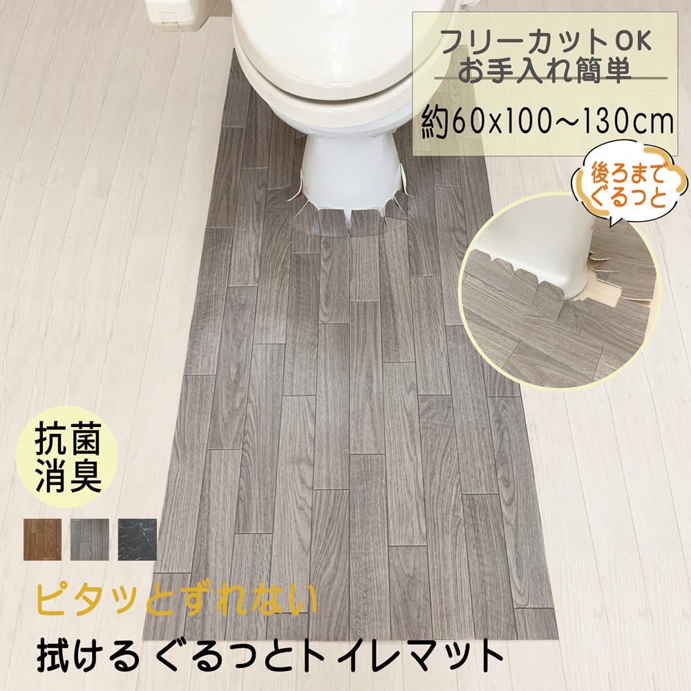 【幅60×長さ115cm】送料無料 拭ける ピタッと吸着 ぐるっとトイレマット ロング マット 耳長 撥水 防汚 抗菌 清潔 トイレ用品 洗える 丸洗い すべり止め すべりにくい 北欧