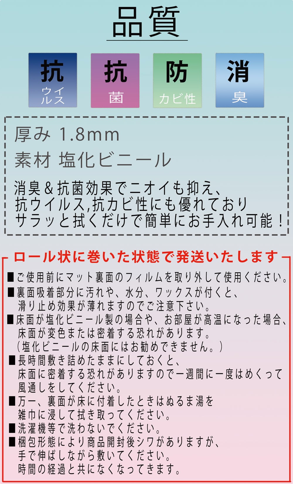 素材:塩化ビニール (抗菌、消臭、抗ウイルス、防カビ、サラッと感)