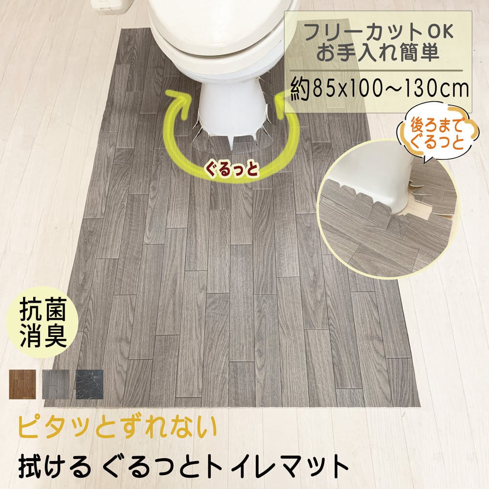 【幅85×長さ100cm】送料無料 拭ける ピタッと吸着 ぐるっとトイレマット ロング マット 耳長 撥水 防汚 抗菌 清潔 トイレ用品 洗える 丸洗い すべり止め すべりにくい 北欧