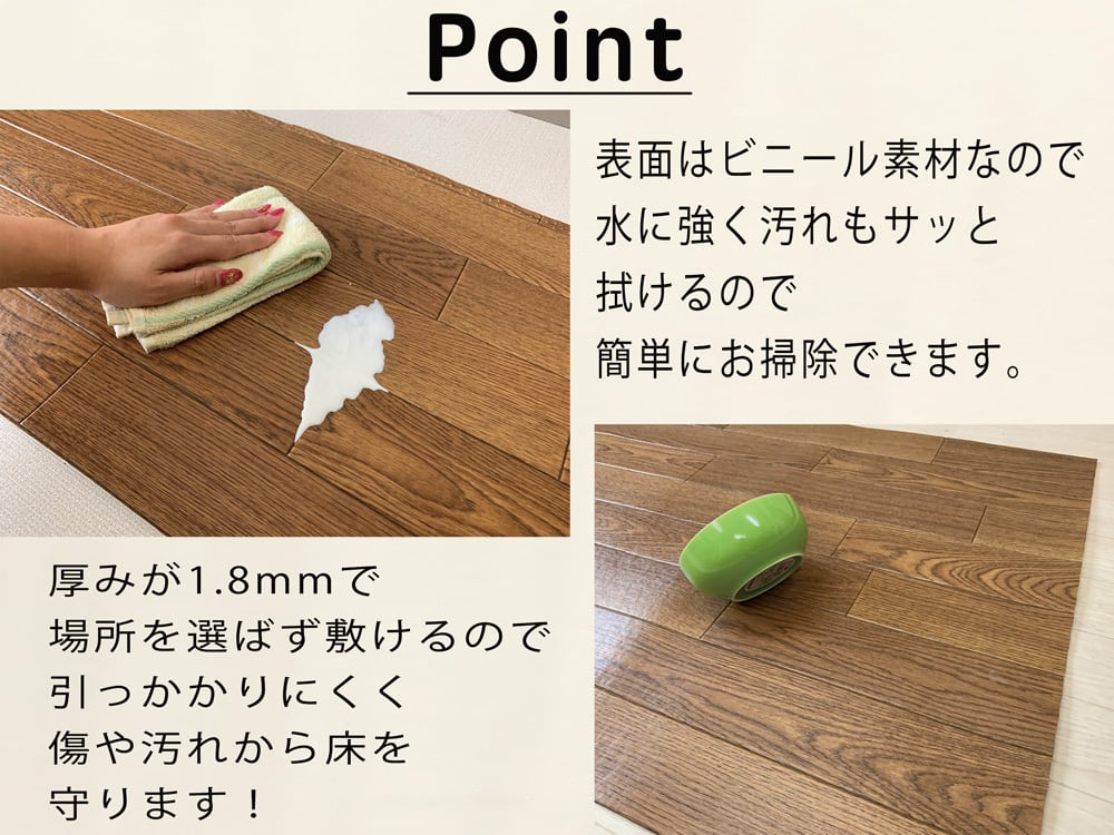 ■ 長時間敷き詰めたままにしておくと、床面に密着する恐れがありますので一週間に一度はめくって風通しをしてください。