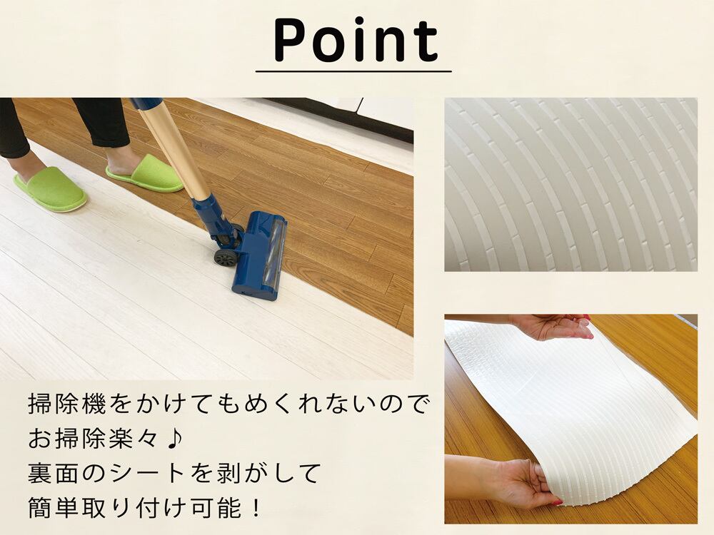 ■ 長時間敷き詰めたままにしておくと、床面に密着する恐れがありますので一週間に一度はめくって風通しをしてください。